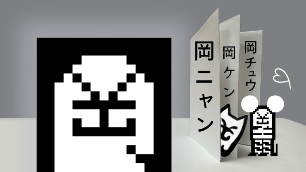 某現代アート作品に象徴として登場する猫モチーフ(犬キャラクターの『岡ケン』と混同されやすいが特に気にしていない様子)